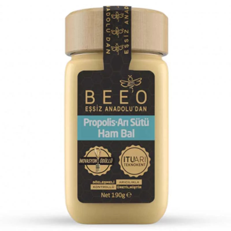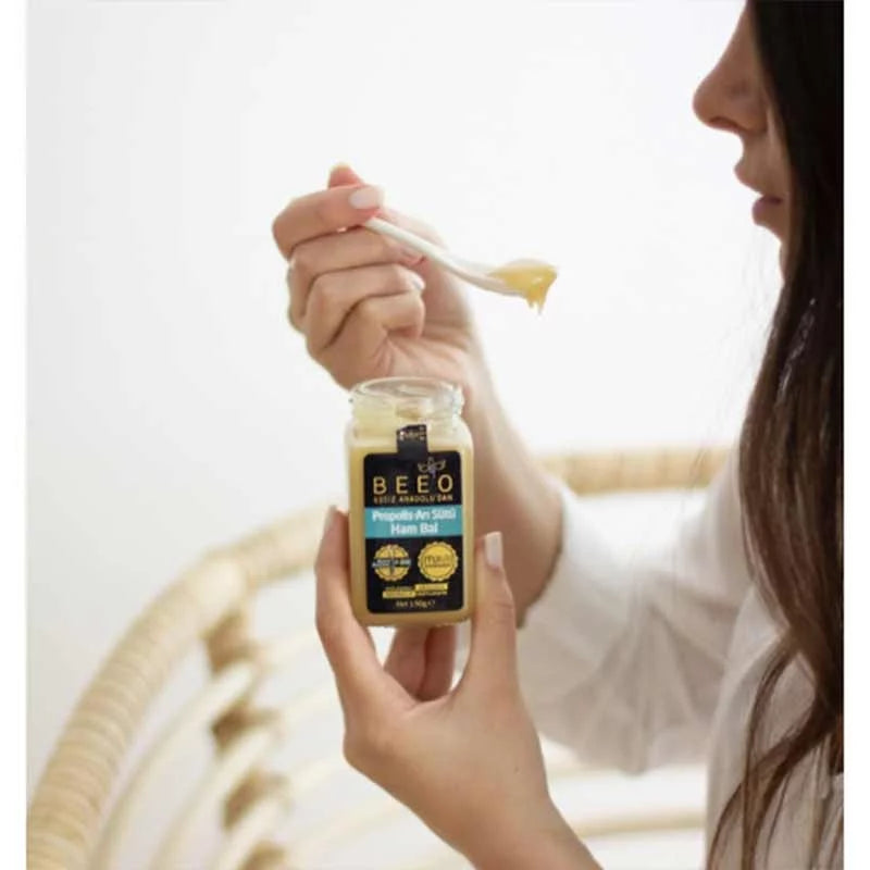 BeeOزبدةغذاء ملكات النحل + حبيبات اللقاح + عسل خام 190 جرام