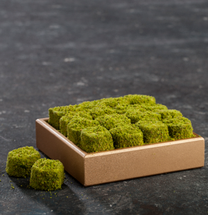 الجزء الخارجي مغطى بالكامل بمسحوق الفستق؛ من خلال الجمع بين لذيذ الحلقوم التركي والفستق، قمنا بإنتاج الحلقوم التركي الذي تحلم به.
