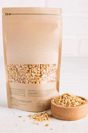 بندق مجروش خشن : أصبحت المكسرات أحد المكونات التي لا غنى عنها في وصفات العديد من أطباقنا الحلوة أو المالحة. تكتسب العديد من حلوى الشوكولاتة نكهتها الأصلية بفضل حبات البندق والجوز.