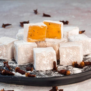 نكهة شرقية أصيلة تجمع بين حلاوة الحلقوم وعبق القرنفل الدافئ. حلقوم ناعم يُضفي لمسة من التميّز والدفء في كل قضمة. مثالي لعشاق النكهات الفريدة مع القهوة أو الشاي
