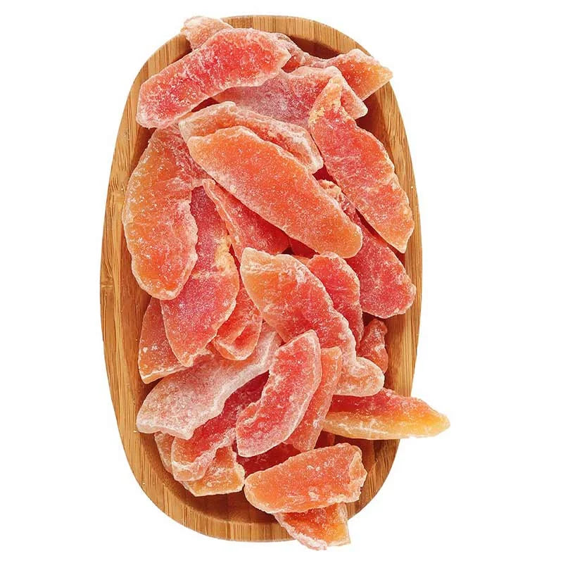بابايا مجففة : البابايا المجففة تحتوي على نسبة عالية من فيتامين ج، والبكتين، وفيتامين أ، والألياف القابلة للذوبان، وفيتامين ب، والزنك، والنحاس، والمغنيسيوم، والكالسيوم، والحديد،