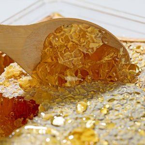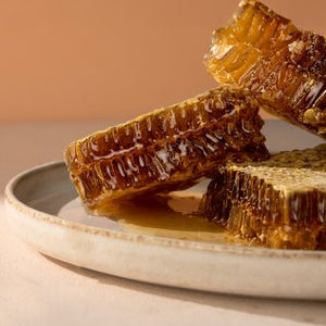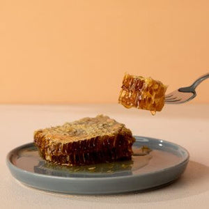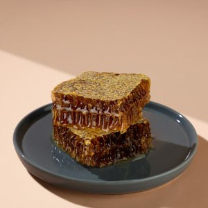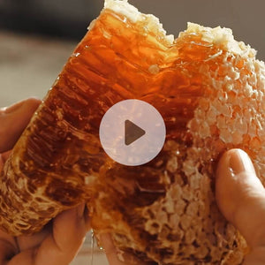 عسل خام عضوي غير مفلتر، مُستخلص مباشرةً من خلايا كاراكوفان التقليدية - مُقدم في شكله الطبيعي على شكل قرص العسل.