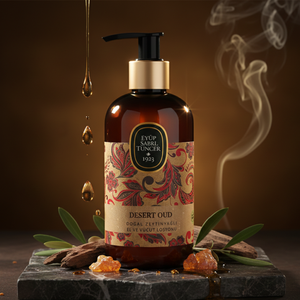 لوشن فاخر برائحة عود دافئة ولمسة شرقية عنبرية، يعطي ترطيب ونعومة مع عطر أنيق يدوم على البشرة.