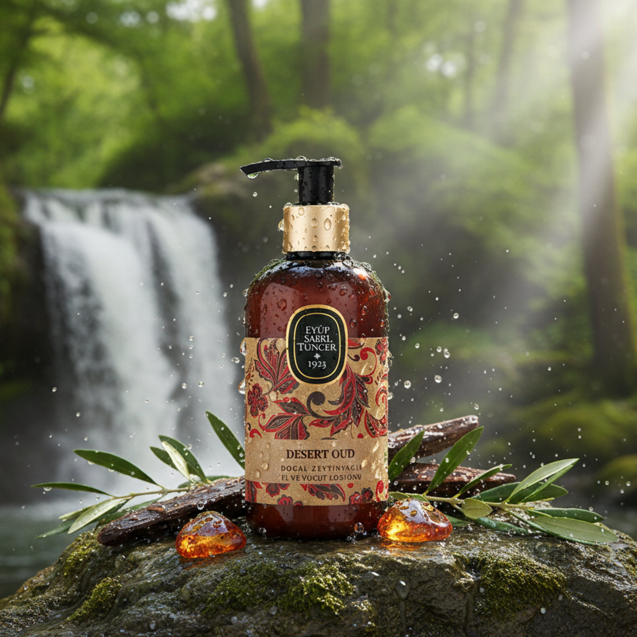 لوشن أيوب صبري تونجر ديزرت عود لليد والجسم بزيت الزيتون الطبيعي – رائحة شرقية عنبرية فاخرة (250 مل)