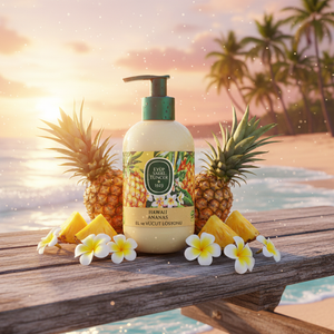 لوشن منعش لليدين والجسم برائحة الأناناس الاستوائية، يعطي ترطيب ونعومة مع إحساس خفيف ومنعش على البشرة.