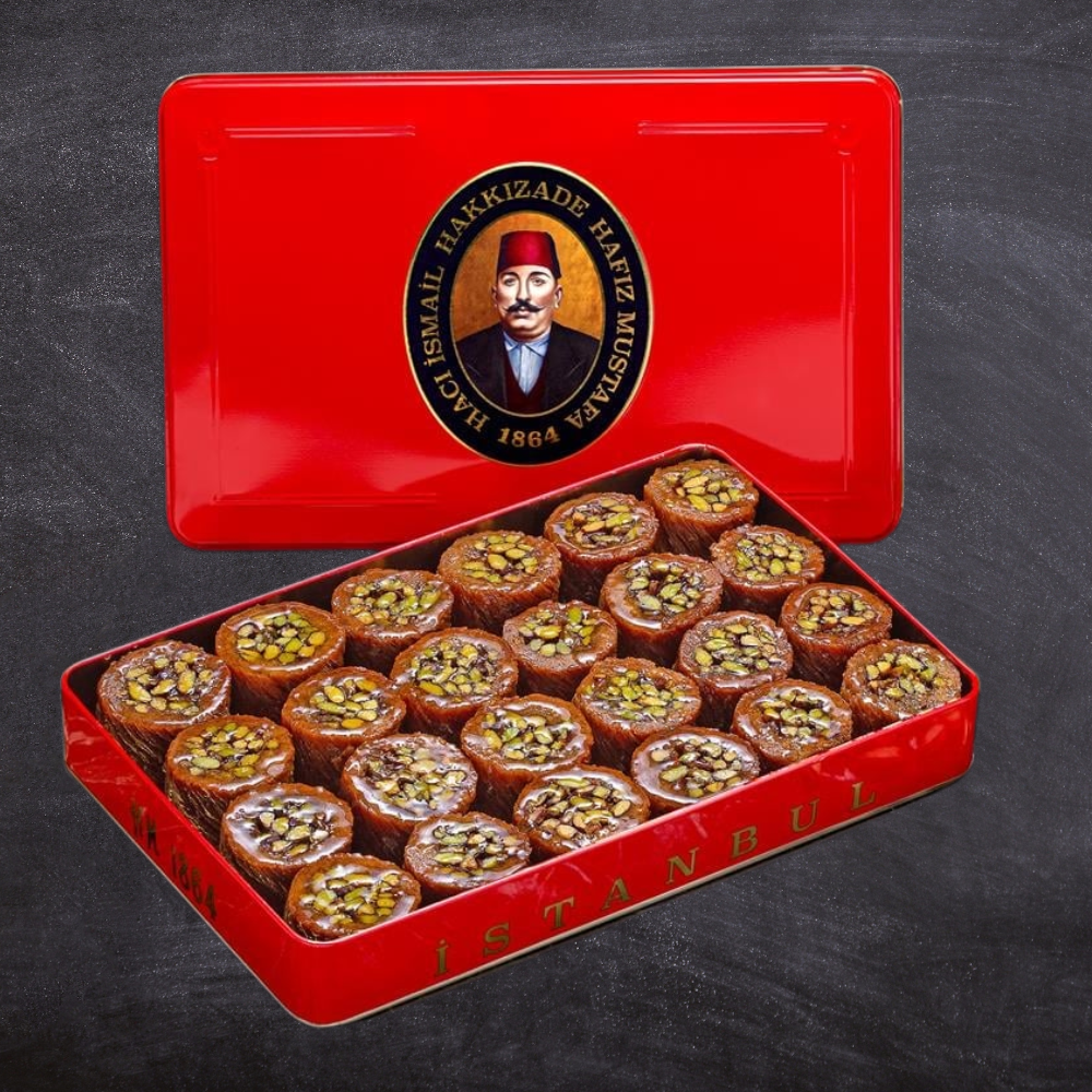 استمتعوا بأحد أشهر وأقدم الحلويات العربية مع حلاوة حلب بالفستق من حافظ مصطفى — تحفة غنية بأجود أنواع الفستق والمكسرات، مع عجينة كنافة ذهبية مقرمشة.