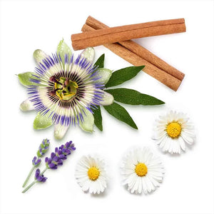 البابونج ، الشمر ، بلسم الليمون ، أوراق العليق ، الخزامى ، أوراق البرتقال ، نبات الباسيفلورا (زهرة الآلام) ، المريمية ، القرفة ، عشب الليمون ، الروائح (البرتقال ، زهر البرتقال)