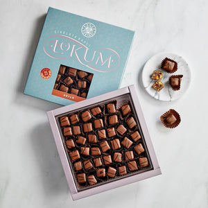 تناغم مثالي بين مكونات الحلقوم والشوكولاتة بالحليب والفول السوداني المحمص ، من اعرق الماركات التركية المختصة بمنتجات القهوة و الحلقوم التركي بالطريقة التقليدية