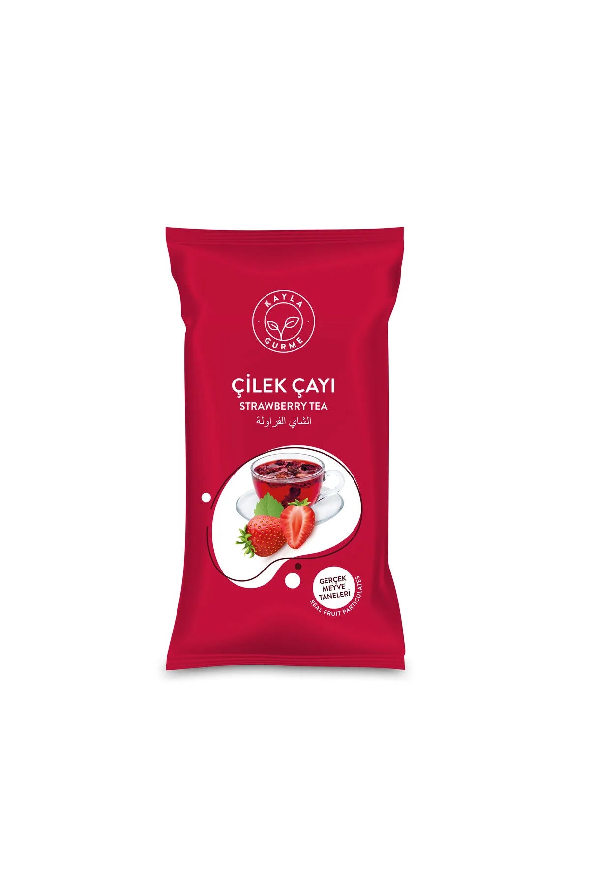 يقدم شاي الفراولة من Kayla Gurme نكهة طبيعية حلوة ومنعشة لعشاق الشاي بالفواكه. يأتي الإصدار المكون من 20 كيسًا مع قطع فراولة حقيقية، مما يمنح كل رشفة ملمسًا لذيذًا. أما لمن يفضلون الشاي السائب، فهو متوفر أيضًا في عبوات 250 جم و 1000 جم، بنفس النكهة الرائعة ولكن بكميات أكبر. يمكن الاستمتاع به ساخنًا أو باردًا، دون الحاجة إلى إضافة سكر إضافي بفضل حلاوته الطبيعية المستمدة من سكر البنجر.