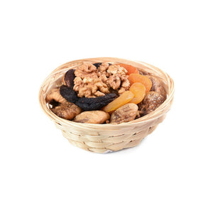 سلة تقليدية مصنوعة من الخوص تعبق بأصالة النكهات الطبيعية. تضم مزيجًا من التين المجفف عالي الجودة، المشمش الذهبي، مشمش اليوم المجفف تحت الشمس، والجوز الغني بالعناصر الغذائية. كل قطعة تم تنسيقها بدقة لتقدم لك هدية طبيعية تليق بكل مناسبة.