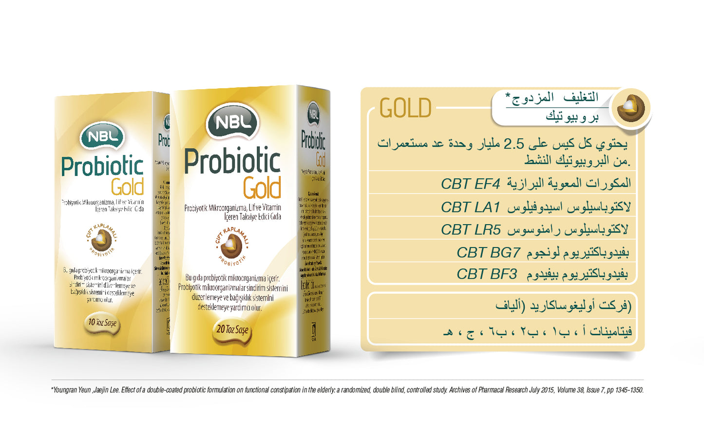 إن بي إل بروبيوتيك جولد – مكمل غذائي لدعم صحة الجهاز الهضمي (20 كيس بودرة)
