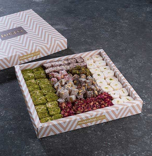 دلّل حواسك مع صينية الحلقوم الفاخرة، المختارة بعناية لتمنحك تجربة شرقية أصيلة بطابع ملكي. تضم التشكيلة مجموعة متنوعة من النكهات الفريدة مثل الحلقوم بورق الورد، الكاكاو، الفستق العنتابي، والرمان الحامض، بالإضافة إلى حلقوم السلطان اللذيذ.