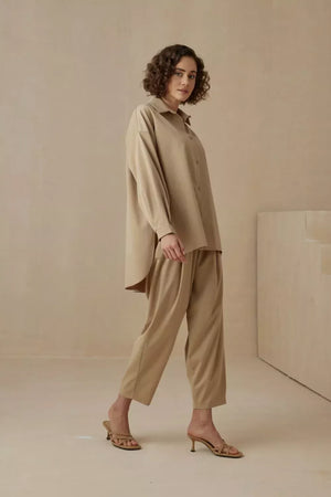 طقم بنطلون وقميص طويل من قماش بولي فسكوز