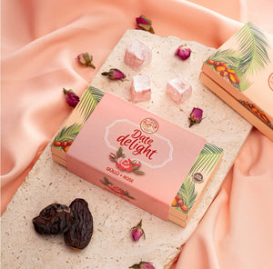 حلقوم شرقي فاخر بنكهات الورد العطرية، محلى فقط بالتمر الطبيعي دون أي سكر مضاف. طراوته الفاخرة ونكهته الراقية تجعل منه خياراً مثالياً لمحبي الحلوى الصحية والنكهات التقليدية.