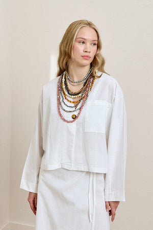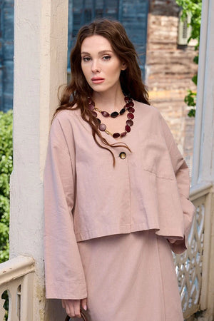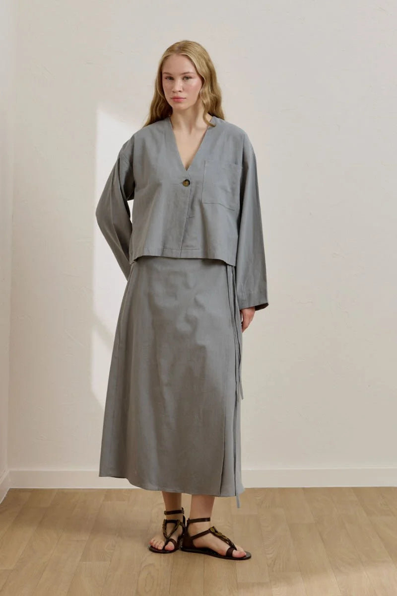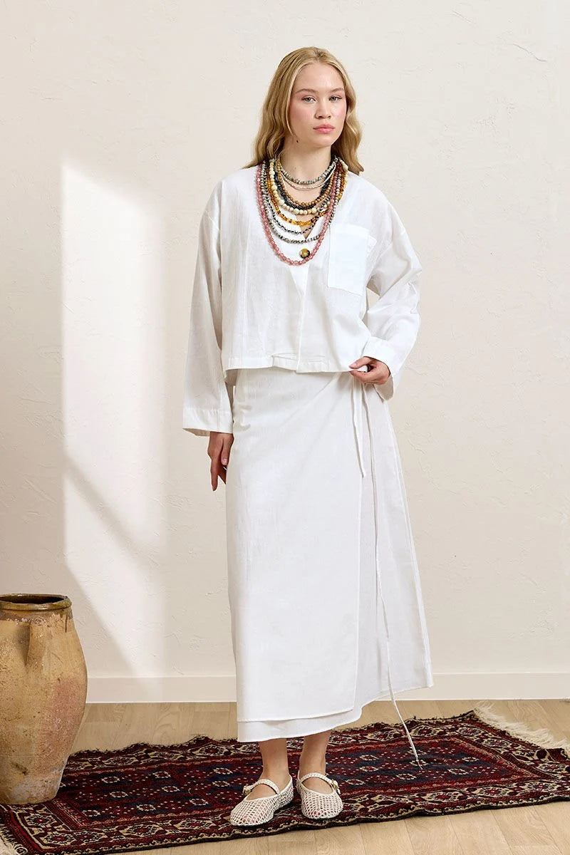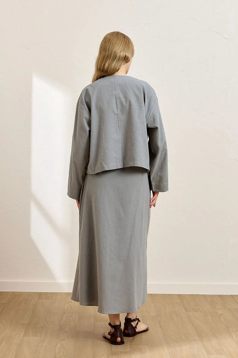 طقم جاكيت بجيب وتنورة كتان عضوي