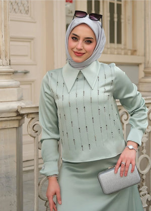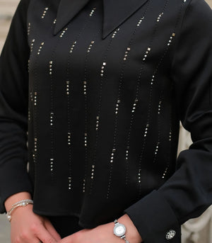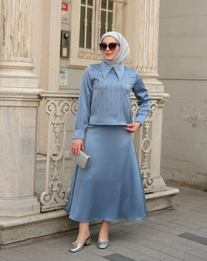 طقم تنورة – من قماش فاخر مع تزيين بالأحجار الأمامية