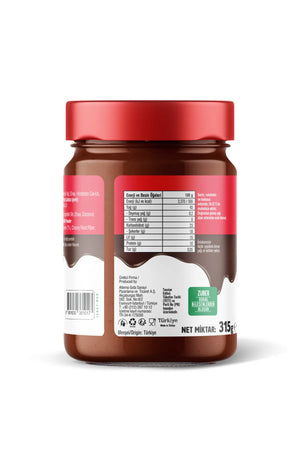 مصنوعة من مكونات طبيعية 100%، بنسبة 36% بندق حقيقي، وبدون أي سكر مضاف، أو زيوت مهدرجة، أو مواد حافظة.