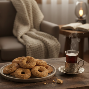 Alaçatı Kurabiyecisi Bagel Salted Cookies deliver the nostalgic taste of sesame-coated bakery bagels in a crispy, savory cookie form. Each bite offers a rich toasted sesame aroma with perfectly balanced saltiness and satisfying crunch.
