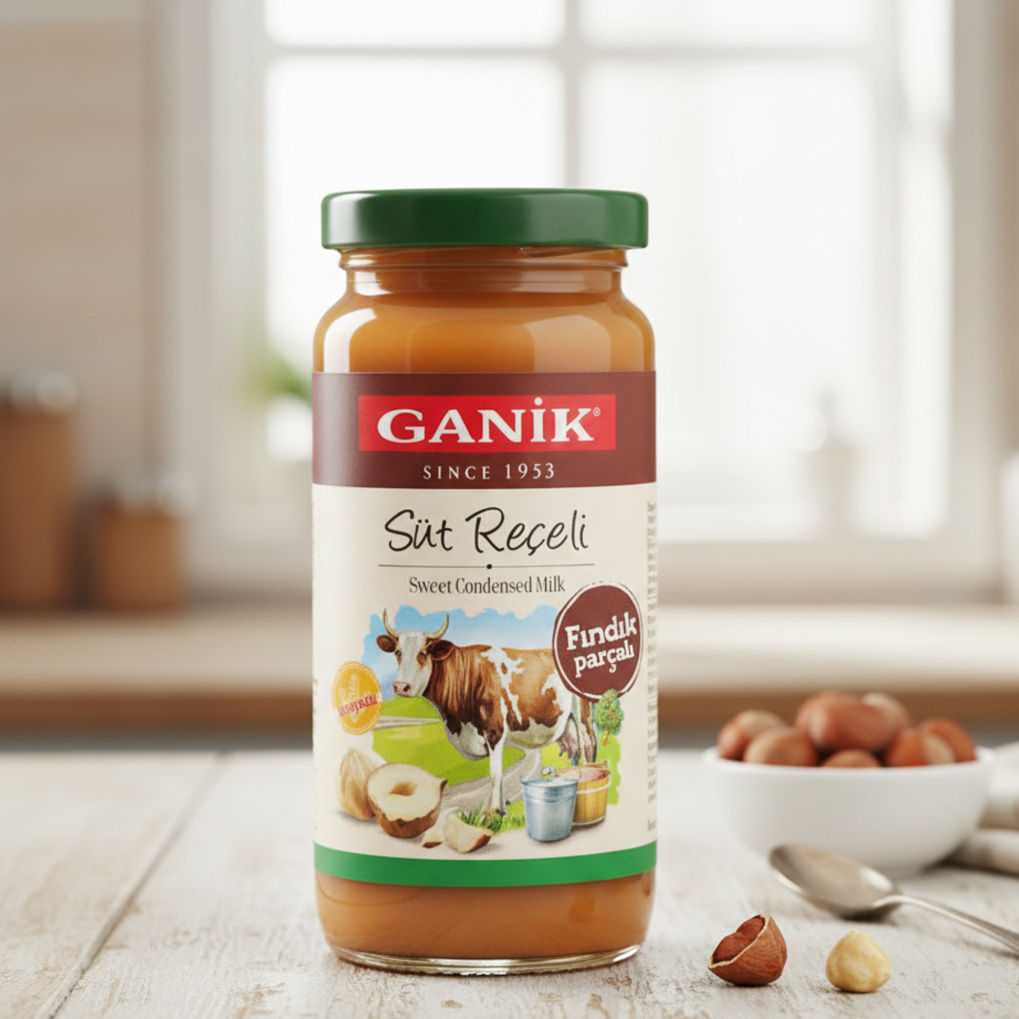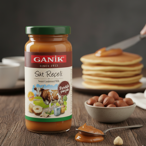 Indulge in the irresistible taste of Ganik Hazelnut Milk Jam – a luxurious blend of creamy milk and rich hazelnuts. Perfect as a spread on toast, paired with crepes and pancakes, or as a sweet topping for desserts and ice cream. A true delight for hazelnut lovers.
