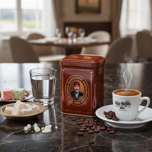 Discover the rich and aromatic flavor of Hafiz Mustafa Turkish Coffee with Mastic, combining finely ground traditional coffee with the distinctive essence of natural mastic. This unique blend offers a bold, full-bodied taste enhanced by subtle sweet and herbal notes.