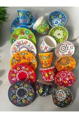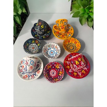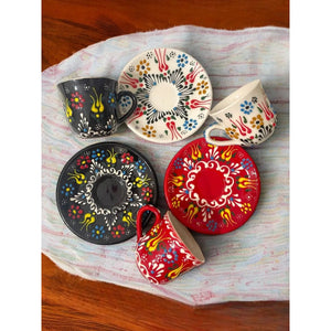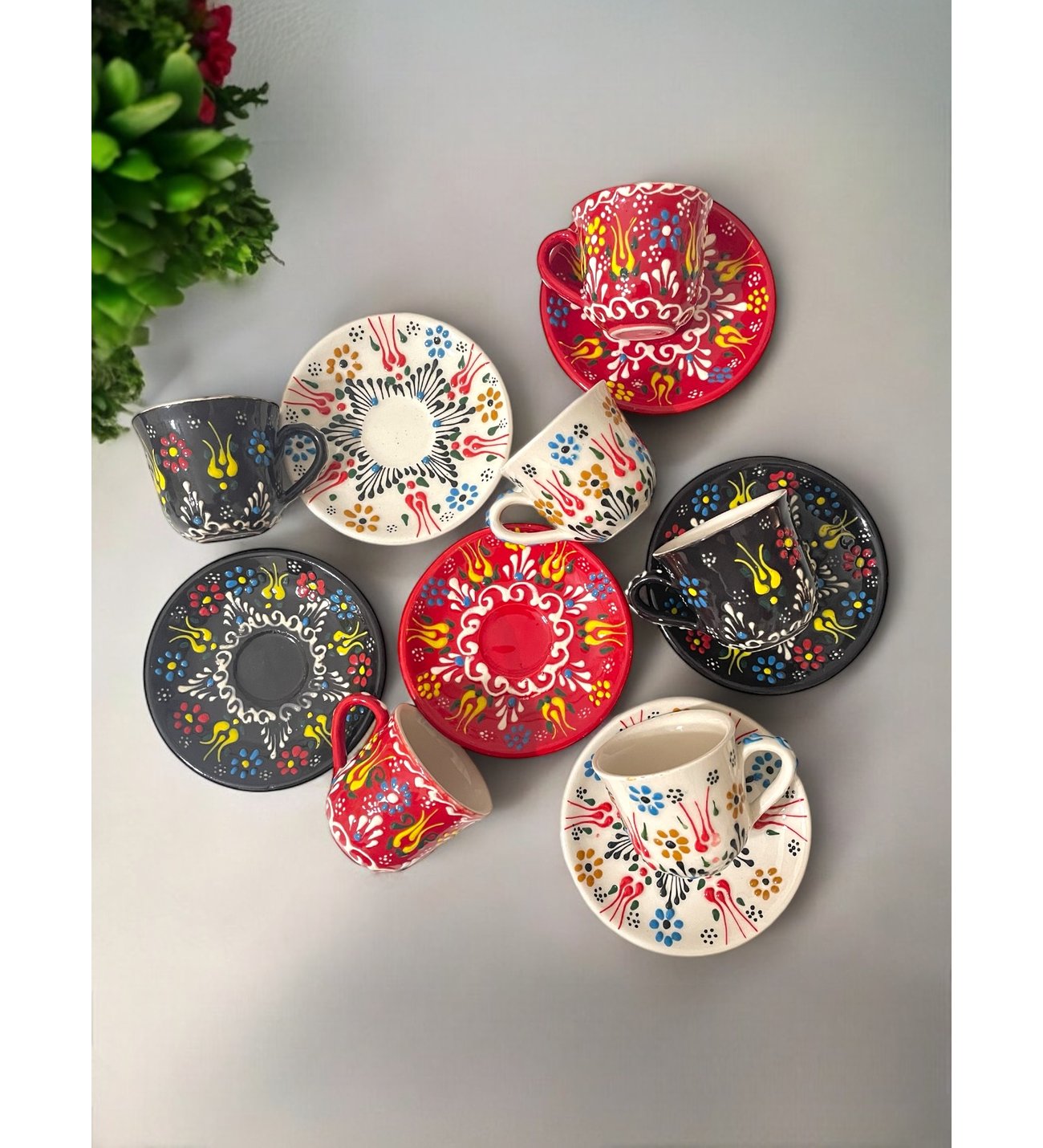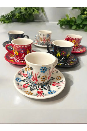 A fully handmade coffee cup set, decorated with artistic Ottoman tulip motifs.