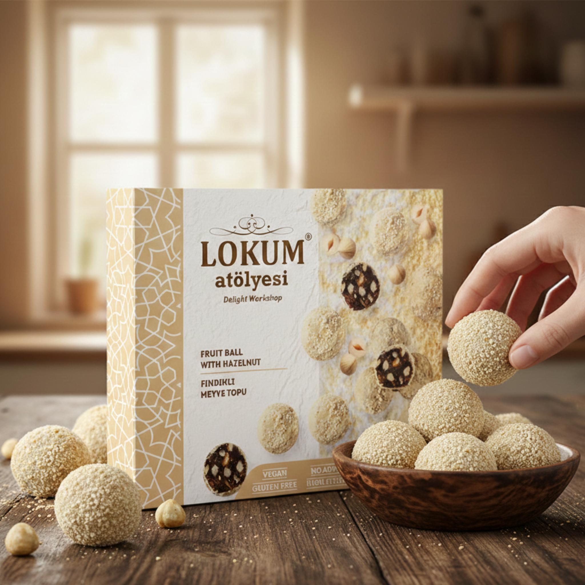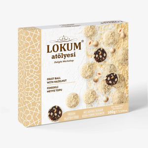 Lokum Atölyesi Hazelnut Fruit Balls 100g are a premium Turkish confection that combines carefully selected dried fruits with crunchy whole hazelnuts, offering a naturally sweet, satisfying, and wholesome snacking experience. Crafted by Lokum Atölyesi, these fruit balls reflect traditional Turkish craftsmanship blended with modern nutritional awareness.
