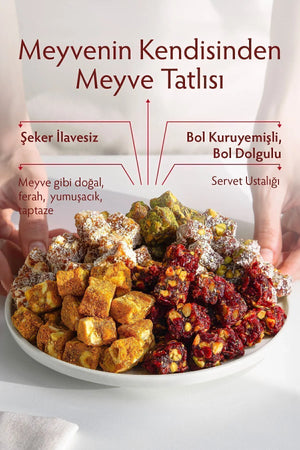 This premium delight from BERCEKIZ SERVET ŞEKERLEME features 5 natural fruit flavors, including the tangy and nutritious Zereshk (barberry). It is double roasted for enhanced texture and made with no added sugar.