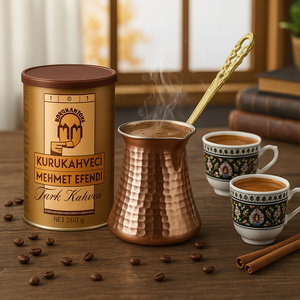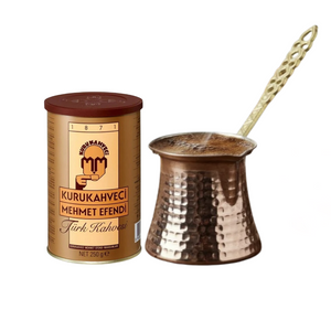 Indulge in the authentic taste of Turkish coffee with the Kurukahveci Mehmet Efendi Turkish Coffee Set. This premium set includes 250g of finely ground Turkish coffee, made from the highest-quality Arabica beans, and a traditional copper cezve for perfect brewing. Ideal for personal use or as a luxurious gift, this set delivers rich aroma, deep flavor, and cultural heritage in every sip. Order now with fast worldwide shipping and elevate your coffee experience!
