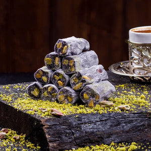 Delight your senses with our exquisite Mix Black Mulberry, Pomegranate, Orange, and Plain Antep Pistachio Finger Turkish Delight. This gift box offers a luxurious selection of traditional Turkish delights, combining the rich sweetness of mulberry and pomegranate, the zesty freshness of orange, and the nutty crunch of Antep pistachios. Perfect for gifting or indulging, each piece is crafted to perfection, offering an authentic taste of Turkey in every bite.