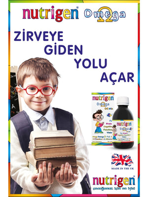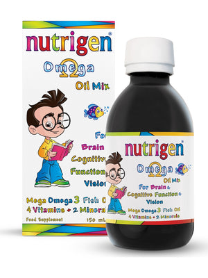 Nutrigen Omega 3 Syrup for Kids offers natural support for their mental and physical development, thanks to its balanced blend of essential Omega 3 fatty acids: DHA and EPA. It is complemented by a mix of essential vitamins and minerals such as Vitamins A, D, E, K, iodine, and selenium, promoting healthy growth and development in children.