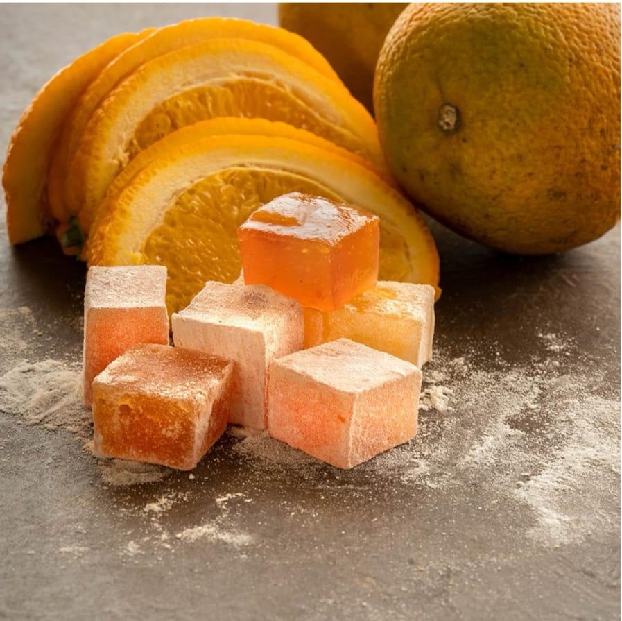 Soft and fruity Turkish delight infused with the fresh taste of real oranges. A delightful harmony of sweetness and citrus tang, offering a refreshing take on a traditional treat.