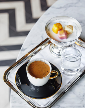 Experience the ultimate luxury in Turkish coffee with the Selamlique Istanbul Exclusive Set. This premium collection includes two 125g tins of Turkish coffee (Dark Roast & Traditional) and a handcrafted copper cezve with an ebony handle adorned with coral details. Designed for discerning coffee lovers, this set combines heritage, elegance, and exceptional quality. A perfect gift for connoisseurs, it offers an authentic and refined brewing experience. Order now with express worldwide shipping and elevate your coffee ritual with Selamlique's timeless craftsmanship.