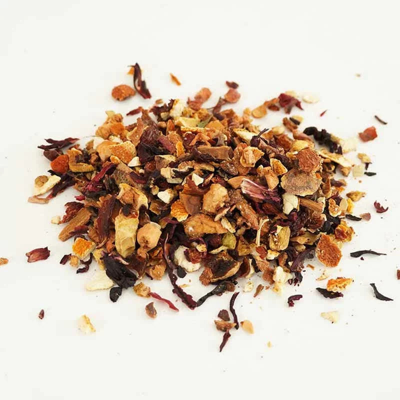Contents; Hibiscus, Cinnamon, Rosehip, Lemon Peel, Orange Peel, Mango