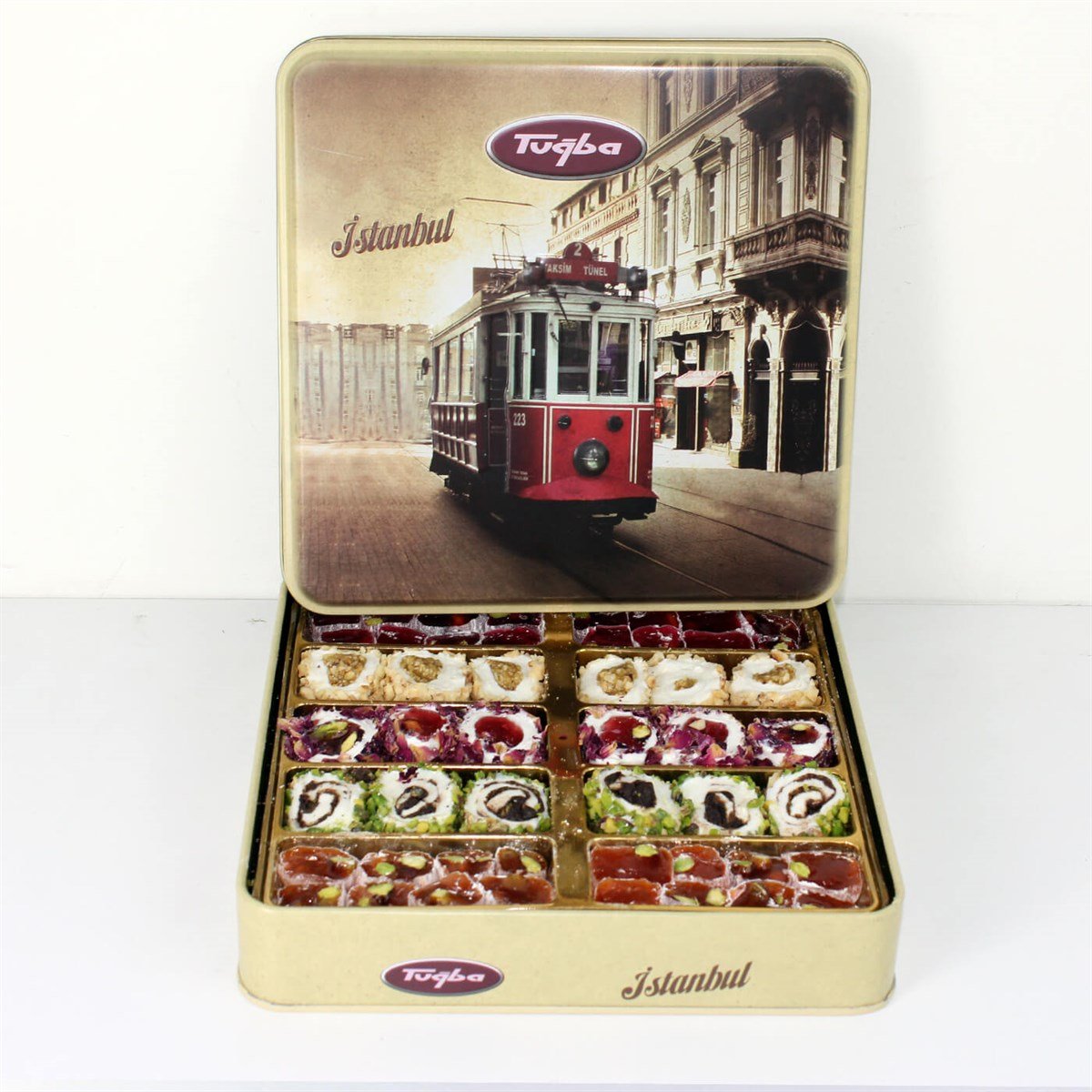 The Tuğba Kuruyemiş Mixed Turkish Delight offers a delightful selection of handcrafted treats made with flavors like pistachio, rose, and more. Each piece is carefully prepared using traditional ingredients, delivering a perfect balance of sweetness and texture. Elegantly packed in a decorative tin box, it’s ideal for sharing or savoring a taste of Turkey.